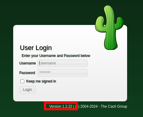 Navigating to http://10.10.11.211 we can see that the web application is running Cacti, a monitoring solution. From the login page we can see that it is version 1.2.22.